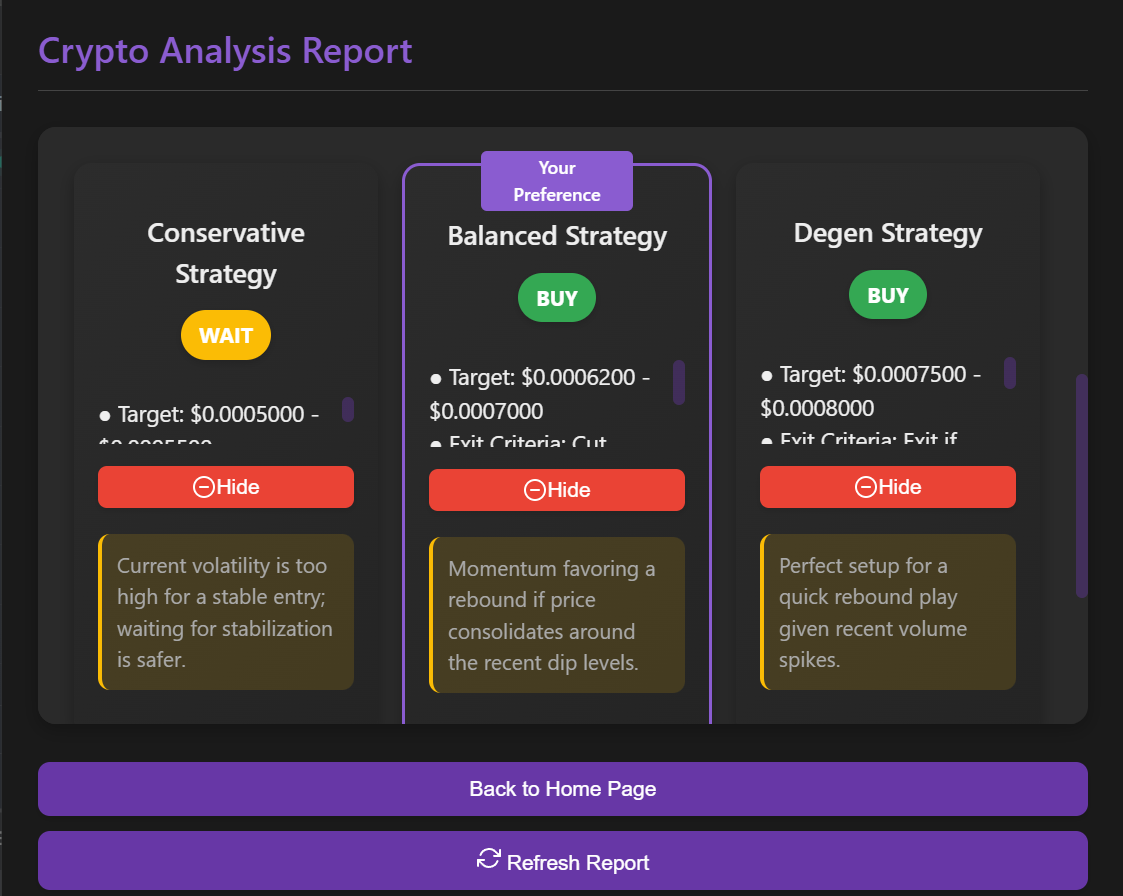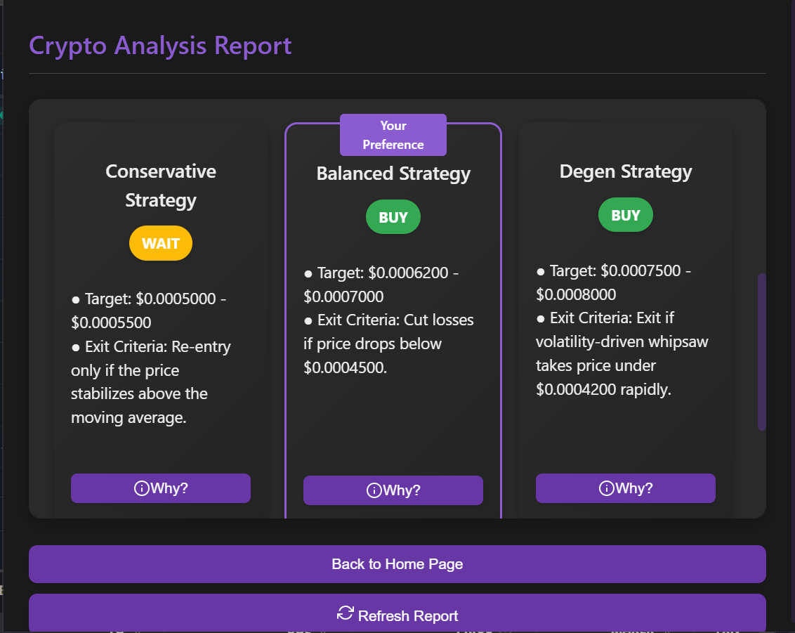 From beginners to pros, Crypto Trading Analysis adapts to your needs. Select your preferred strategy and let AI do the rest.